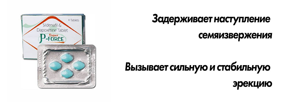 Часто эректильная дисфункция проявляется на фоне преждевременной эякуляции. Super P-Force позволяет использовать всего один препарат и эффективно устранять обе проблемы. Средство помогает в 97% случаев. Прием Супер П Форсе курсом помогает добиться стойкой эрекции, увеличить длительность полового акта и повысить качество сексуальных контактов. На фоне приема препарата улучшается общее психологическое состояние, уходит тревога, скованность и напряжение. У Super P-Force минимум противопоказаний, дженерик можно использовать при наличии других заболеваний. Препарат действует независимо от причин сексуальных проблем.