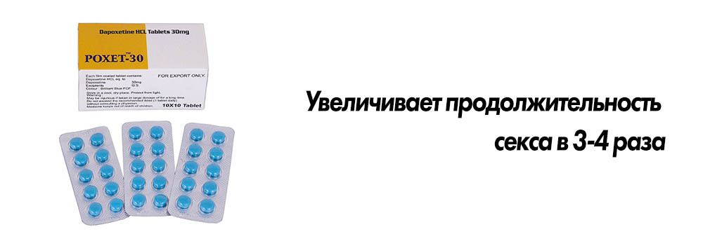 Дапоксетин – препарат против преждевременной эякуляции. Средство создано на основе действующего вещества Дапоксетина, которое входит в состав популярного препарата для увеличения длительности полового акта. Благодаря действию Поксет продолжительность секса увеличивается в 3-4 раза.