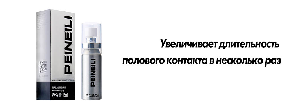 Спрей выпускается в объеме 15 мл. Упаковка в виде флакона с распылителем удобна в применении. Баллон небольшой и входит в карман или сумку. В составе присутствует лидокаин, который тормозит момент эякуляции. Также добавлены вспомогательные вещества, которые способствуют увеличению длительности полового акта в 3-4 раза. Peineili не пачкает руки и белье и действует моментально.